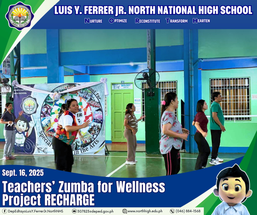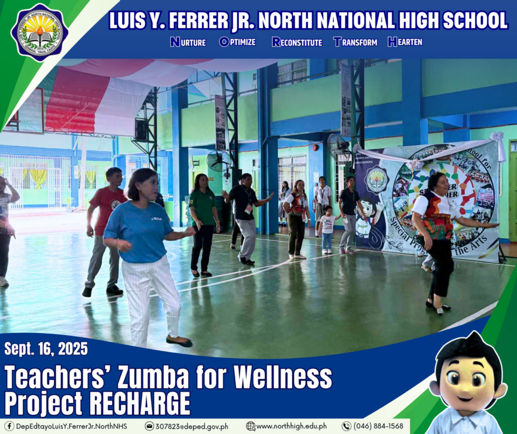 The MAPEH Department, led by Mr. Erwin A. Asugui, Subject Coordinator, and Mr. Ferdinand A. Buenaventura, MAPEH Focal Person, spearheaded todayโs Zumba Dance Exercise under Project RECHARGE.