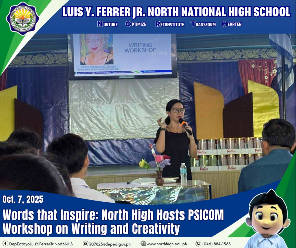 A wave of creativity swept through the covered court of Luis Y. Ferrer Jr. North National High School on October 7, 2025, as students and teachers came together for the ๐๐๐๐๐๐ ๐๐จ๐จ๐ค ๐๐ฎ๐ฆ ๐๐จ๐ซ๐ค๐ฌ๐ก๐จ๐ฉ ๐จ๐ง ๐ญ๐ก๐ ๐๐๐ฏ๐๐ฅ๐จ๐ฉ๐ฆ๐๐ง๐ญ ๐จ๐ ๐๐จ๐๐๐ฅ๐ข๐ณ๐๐ ๐๐๐ญ๐๐ซ๐ข๐๐ฅ๐ฌ ๐๐ง๐ ๐๐จ๐ซ๐ค๐๐จ๐จ๐ค๐ฌ ๐๐จ๐ซ ๐๐จ๐ซ๐ญ๐ก ๐๐ข๐ ๐ก ๐๐๐๐ ๐๐๐๐ซ๐ง๐๐ซ๐ฌ. The event became a space where imagination met purposeโwhere stories, learning, and local identity intertwined.