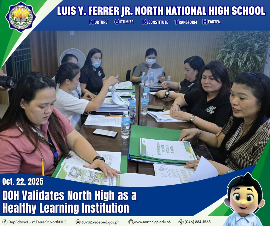 The Department of Health โ Center for Health Development IV-A (DOH CHD IVA) conducted the ๐๐๐๐ฅ๐ญ๐ก๐ฒ ๐๐๐๐ซ๐ง๐ข๐ง๐ ๐๐ง๐ฌ๐ญ๐ข๐ญ๐ฎ๐ญ๐ข๐จ๐ง (๐๐๐) ๐๐๐ฅ๐ข๐๐๐ญ๐ข๐จ๐ง at Luis Y. Ferrer Jr. North National High School on October 22, 2025, ensuring that the school continues to strengthen and promote health and wellness within the learning environment.
